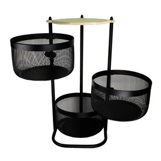 جاپیازی سه طبقه گرد انتخابی کاربردی و زیبا برای هر آشپزخانه است. این محصول با طراحی مدرن و بدنهی فلزی مشبک، امکان جریان هوا را فراهم کرده و به تازهماندن پیاز و سیبزمینی کمک میکند.طبقات جادار و مقاوم آن ظرفیت مناسبی برای نگهداری مواد غذایی دارد و پایههای محکم، استحکام بالایی به محصول میبخشند. ترکیب فلز مشکی با صفحه چوبی بالایی، ظاهر آن را شیک و هماهنگ با دکوراسیون آشپزخانه میسازد.این جاپیازی علاوه بر کارایی، یک المان دکوراتیو نیز به حساب میآید و برای استفاده در منزل، کافیشاپ یا رستوران بسیار مناسب است.