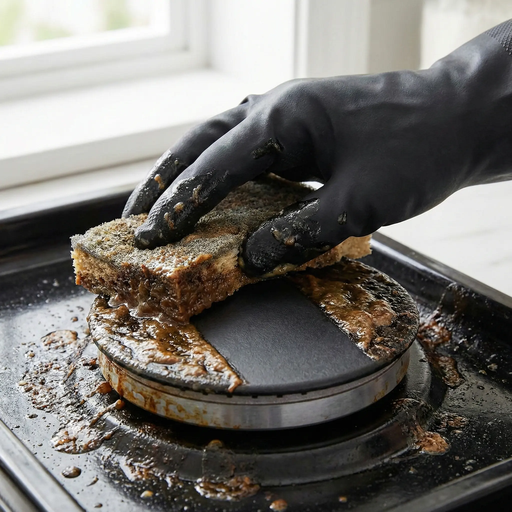 - با یک اسکاج نرم یا مسواک روی سطح بکشید.